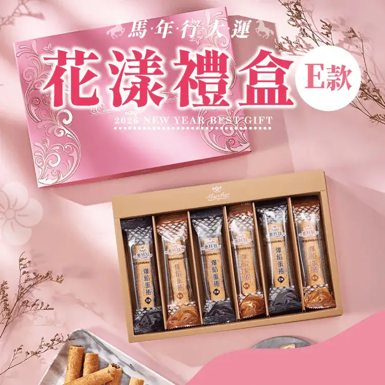 花漾禮盒B款結合了品牌最具代表性的蛋捲、餅乾與傳統糕餅。外盒採用典雅的花卉主題設計,視覺大器且充滿節慶美感,是春節期間拜訪親友、企業送禮的實惠選擇。