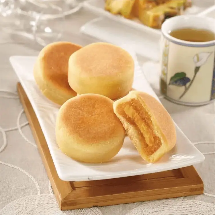 圓滿禮盒內的「太陽餅」堅持純手工製作,以特製純麥芽內餡搭配層層疊疊的薄酥餅皮,入口即化且甜度適中;「桂圓老婆餅」則選用頂級奶油與上等龍眼乾製餡,口感紮實綿密,每一口都能品嚐到濃郁的龍眼香氣。